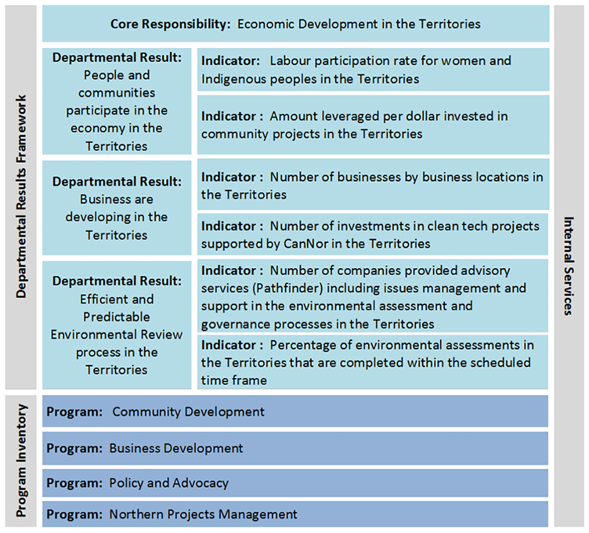 This Reporting Framework Table demonstrates CanNor's Departmental Results Framework and Program Inventory of record for 2018-19: