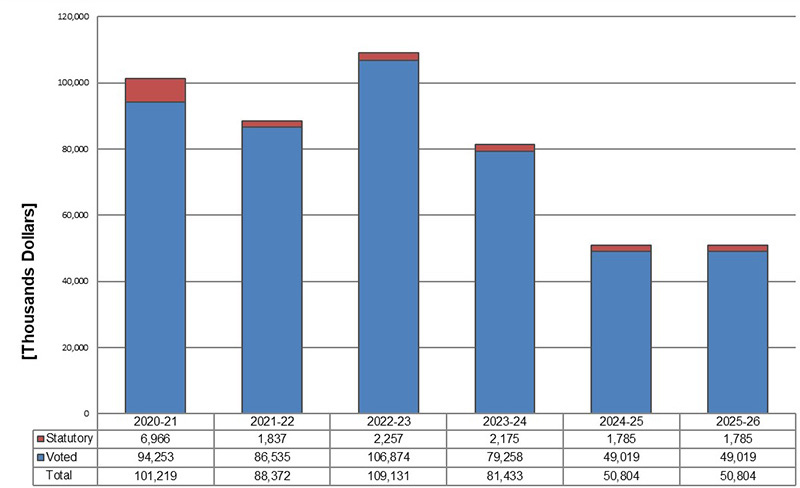 The variance between 2022-23 forecast and 2023-24 planned results is primarily due to the expiration of budgetary authorities in 2023-24 for Budget 2021 programs, such as the Tourism Relief Fund, Jobs and Growth Fund and Canada Community Revitalization Fund, meant to support economies in rebounding from the impacts of the pandemic. In addition, two more initiatives will be sunsetting in 2023-24: the Northern Adult Basic Education Program and the Inuit Impact Benefit Agreement with the Qikiqtani Inuit Association.